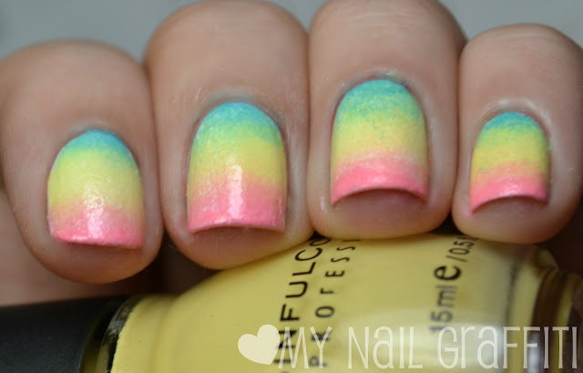 This isn't what I am wearing for my birthday, I will probably post that tomorrow. I saw an easy way to do this look on Pinterest instead of trying to make a perfect gradient by hand. I started with a white base. Just paint the sponge directly with all the colors and dab it once on some paper and then the nail and it's done! Maybe you already knew about that. haha