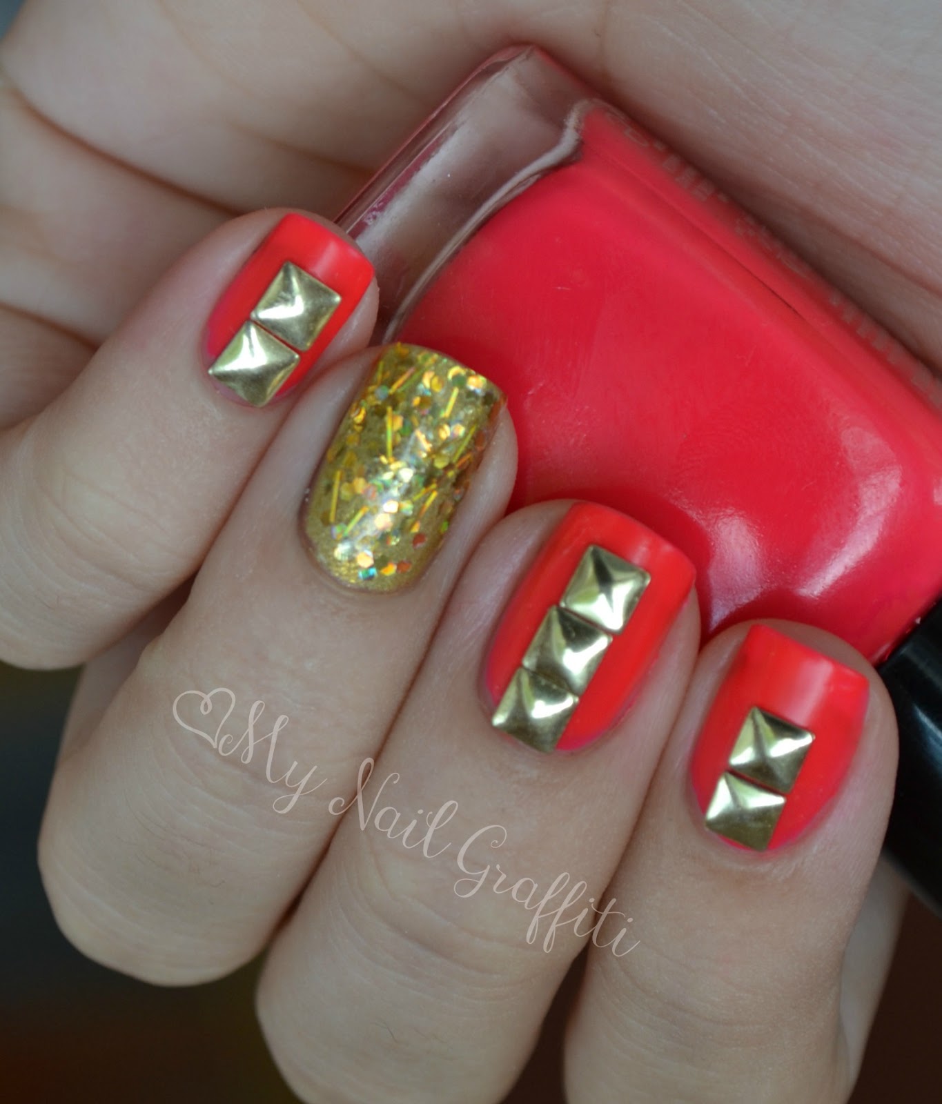 I have a funky manicure to show you this evening. I recently tried out these studs from Born Pretty Store after seeing a few similar manis on some blogs. My polish inspiration comes from this blog! She's a great one to follow if you aren't already.
